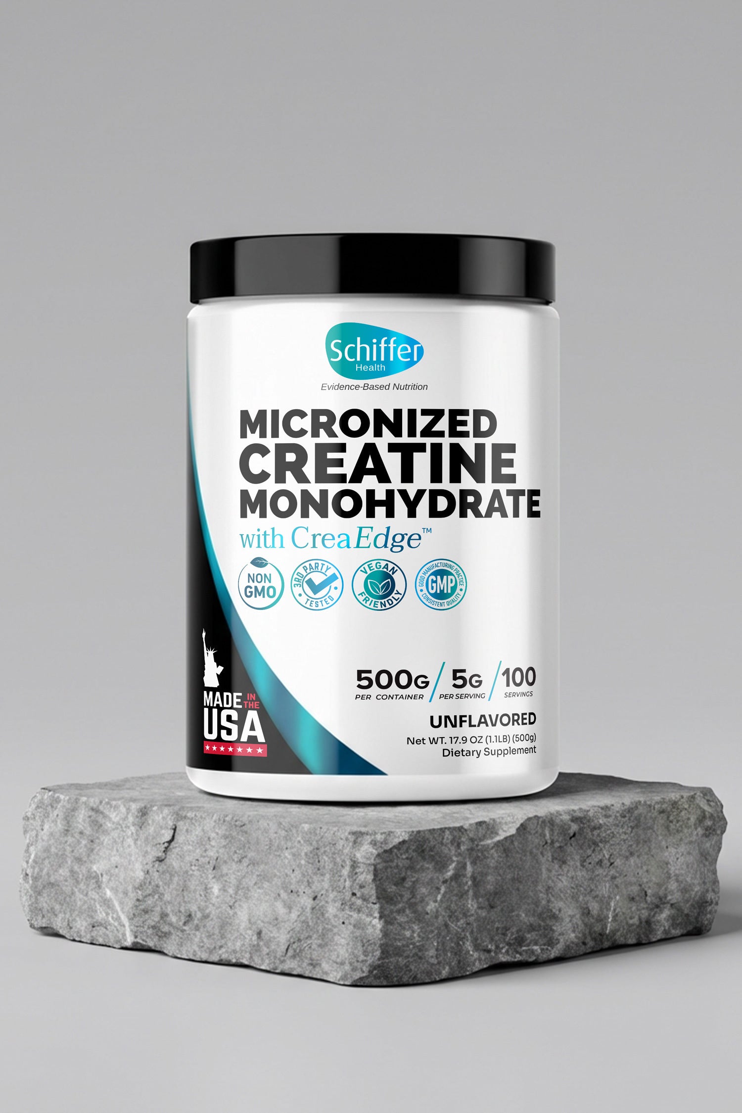 Schiffer Health Micronized Creatine Monohydrate is a clean, science-backed formula designed to support strength, power, and endurance by fueling the body’s ATP energy production for high-intensity training, without stimulants or caffeine. With consistent daily use, it helps promote lean muscle performance and workout recovery while also supporting brain energy metabolism associated with mental clarity, focus, and cognitive stamina. Crafted to Schiffer Health’s quality standards, the ultra-fine micronized powder mixes smoothly, is easy to digest, and delivers reliable daily performance support for both women and men.